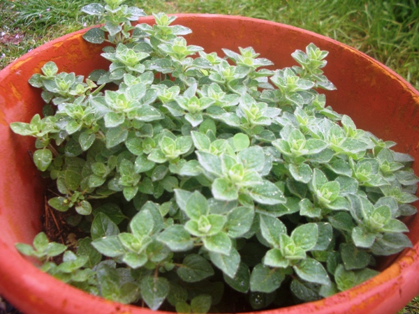 I love growing fresh herbs, because they add so much flavor to food. This is the oregano, which is doing extremely well in its little pot!