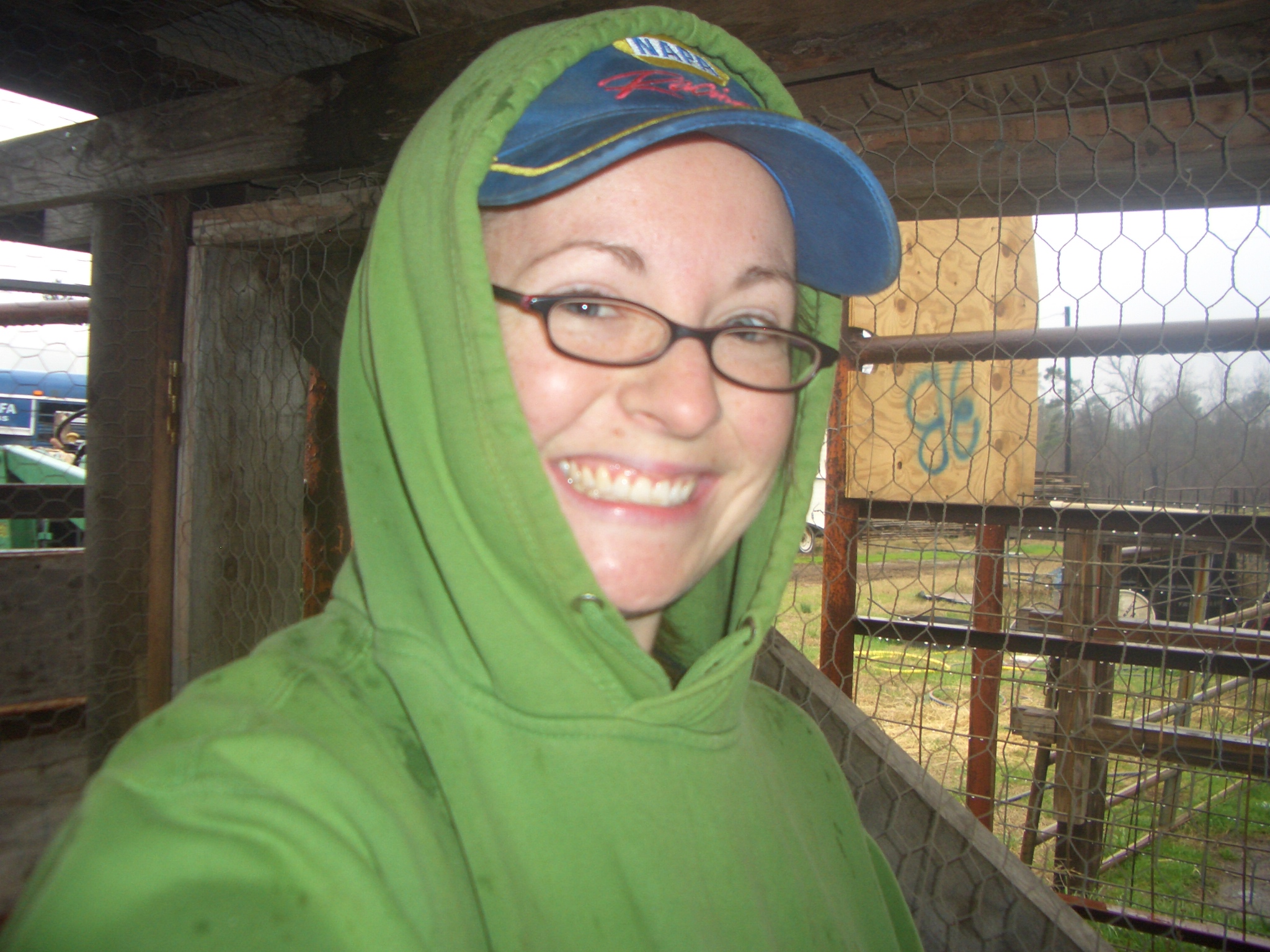 But actually, we weren’t even really performing procedures this time, so we didn’t use “the chute” at all. We just used the working pens, which are sturdy, permanent cow-proof enclosures with lots of closeable exits and holding pens. Very convenient for sorting live animals the same size as a small car!